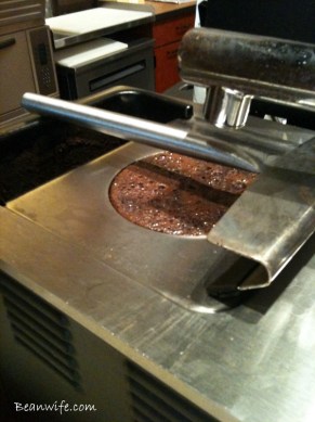 Medium-Dark정도로 볶은 원두. 기존의 스타벅스의 강배전 보다는 약간 덜 볶은 듯 하다. 하지만 약간의 기름기는 여전히 포착 되었음. 놓칠새라 바리스타가 그라인딩 한 원두의 향을 있는 힘껏 고개를 내밀어 킁킁-대보는데. 흠… 함께 주문한 Costa Rica Tarrazu보다 원두의 향은 확실히 덜하군. 아쉽다.