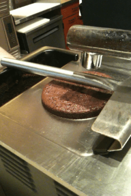2) 그 상태로 1분여 정도 미리 지정한 온도의 물에서 커피를 우려낸 후 다시 필터가 위로 솟으며 압력을 역이용 해 빠르게 커피를 추출해 준다. 봉긋하게 기계위로 솟아 오른 커피 찌꺼기는 슥- 긁어 내리면 추출 끝! 순간 드는 생각. 나.도. 내.릴.수.있.을.듯! -_+