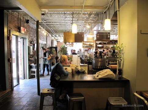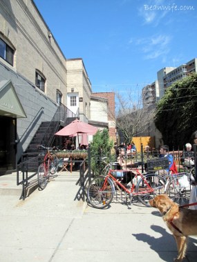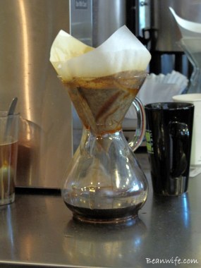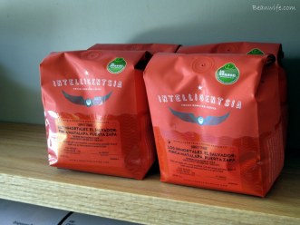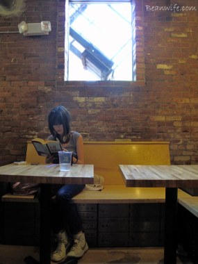 활짝 열어젖힌 창가 자리들과 간만에 가득찬 마당좌석들, 그리고 마실나온 동네 큰 개들과 가로수를 촘촘히 포박한 자전거들이 말해 주듯 그저 평화롭고 눈부신 하루. 카페에 들어서자마자 항상 그렇듯 골똘히 메뉴를 고심하던 콩부인. ‘그래! 이런 날은 핸드드립 커피지!’ 하지만 조금은 북적대는 카페를 보며 ‘행여 스탭들이 귀찮아하진 않을까?’ 하는 괜한 걱정에 기어들어가는 목소리로 살짝 말을 건네 본다. 하지만 왠걸? 귀여운 얼굴의 씩씩한 점원 아가씨가 ‘Why not?’ 이라며 흔쾌히 커피 종류를 선택해보라고 하자 ‘그럼, 오늘은 in season(제철 커피콩을 의미) 엘살바도르 커피로!’라며 급 상기된 목소리로 대답하는 소심함이란…하지만 뭐 어때? 덕분에 이 좋은 봄날, 요즘 맛있다고 소문난 Intelligentsia(인텔리젠시아)커피를 신의 물방울 속 디켄터 분위기의Chemex(케멕스)드립으로 맛 볼 수 있게 됬으니…