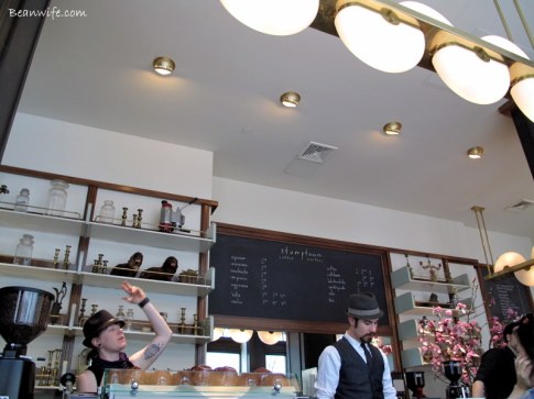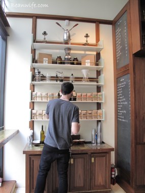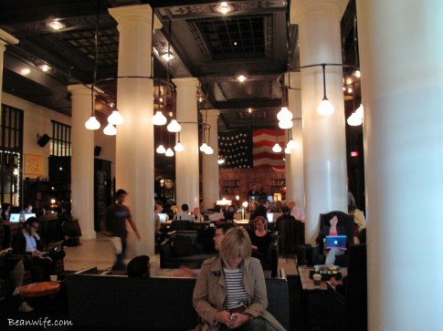 빼꼼히 육중한 문을 열고 들어서니 반질반질한 분위기의 카페 카운터. 방금 전까지의 썰렁한 거리의 분위기는 온데간데 없고 그저 길게 늘어서 주문을 기다리는 설렌 커피행렬 뿐. 급변한 분위기에 어리둥절한 나. 두리번거리며 약속한 친구를 찾는다. 앗- 순간 눈 앞이 환해지는데…키가 큰, 대머리가 잘 어울리는 하얀 사내 ‘피터’다. 무작정 뉴욕의 커피가게를 돌아보겠다고 이 큰 도시로 쳐들어 온 내게, 트위터로 따뜻한 커피가이드의 손길을 내밀어 준 바로 그 피터. 힘찬 악수 후, 자연스럽게 커피 주문행렬에 가담하는 우리. 조용하지만 열정으로 가득찬 커피러버들의 역사적인 회동이랄까…^^;;