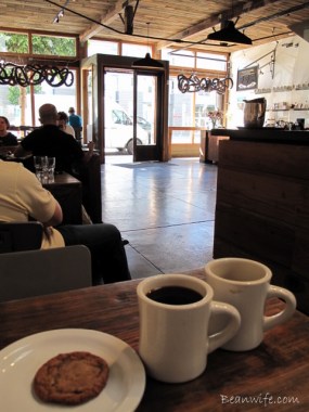 쿠키 한 입에 맛과 향이 빠짐없이 잘 우려난 커피 한모금을 번갈아 마셔가며 빠른 속도로 컵과 접시를 비우고 있구나… 한시간쯤 지났을까? 새 커피가 나왔다는 소리를 듣고는 기다렸다는 듯 빈 접시를 들고 카운터로. 결국 ‘쿠키랑 커피 한 잔 더!’를 주저없이 외친다. 흠- 굳이 변명을 하자면 이정도의 신선한 프레스 커피라면 매 시간마다 한잔씩 거뜬히 해치울 수 있을 것 같았다.