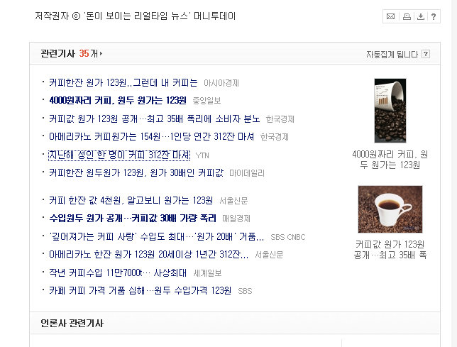 거의 100% 수입되는 커피 생두나 원두이기에 어느정도 원가 부담은 이해가 가지만 분명 한국의 원두커피 유통구조 어디쯤에 큰거품이 껴있다고 생각한다. 하지만 그 거품을 찾아서 고발하고 싶다면 적어도 지난번 원가 123원 따위의 기사는 안쓰는게 나을 뻔 하지 않았나 싶다. 다음에 제대로 쓸 때 부디 참고하길 바라는 마음에 오랜만에 남의 나라 뉴스 펌질을 다 해본다.