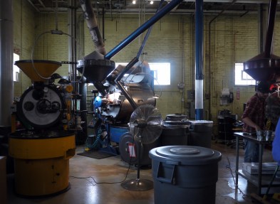 사실 필자의 스페셜티 커피에 대한 관심은 바로 인텔리젠시아 커피와 함께 시작되었다고 해도 과언이 아니다. 보스턴의 한 카페에서 우연히 맛본 이들의 커피는 무지개가 연상되는 다양한 커피 맛으로 갑자기 내 뒷통수를 치며 새로운 커피 세계에 눈을 뜨게 만들었다. 그 이후 먼 도시에서 그들의 커피의 팬으로 머물다 드디어 그들이 커피를 볶고 가르치는 바로 그 곳, 인텔리젠시아 본사를 방문해 그들의 커피를 마음껏 부어라 마셔라 하게 될 날이 오고 말았다. 다운타운에서 서쪽으로 조금 떨어진 상업지구에 위치한 시카고 로스팅 공장. 생각보다 소박해서 귀여워 보이는 총 세대의 로스터기(90Kg짜리 Ideal Rapid Gothot 두 대와 23Kg 한 대) 중 두 대의 대형 로스터기가 쉴 새 없이 커피를 볶아 내고 있었다. 하지만 로스팅 기계와 연결되어 불순물을 걸러내고 원두를 이동시키는데 사용하는 튜브 시스템만이 바삐 돌아가는 것을  제외하고는 전체적으로 한적해 보였다.