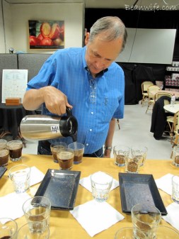 사실 이번 방문의 가장 큰 설레임은 George Howell이 커피를 테이스팅 하는 모습을 직접 볼 수 있다는 것과 한 테이블에서 같이 커핑스푼을 드는 호사를 누리는 것. 최고의 커피를 찾아 경매하는 Cup of Excellence프로그램의 창단멤버이자 날카로운 미각과 오랜 경력의 커피 테이스터와 한 테이블에서 커피 맛을 보고 평가할 수 있다니…준비된 커핑(Cupping) 테이블을 보자 내 심장 박동이 빨라지기 시작했다.